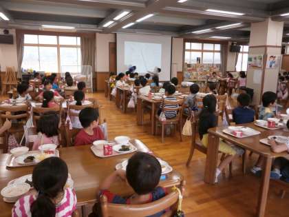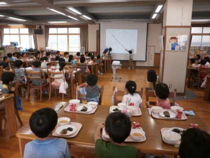 「わたしは,さばのかわりにがおいしかったです。なぜなら,たれがあまくて魚がにくのようだったからです。キャベツのすましじるもおいしかったです。なぜなら,しるがきいていてキャベツやニンジンとあっていておいしかったからです。」(3年児童)