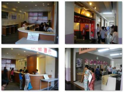 たくさんの会社に分かれて販売や事務手続きをしたり,お客さんになって買い物をしたりしています。