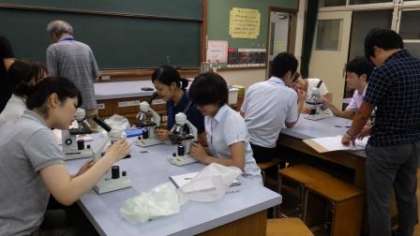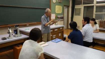 本校では,若手教員を中心に,授業力の向上に向けて自主研修会「Nijyo−kita道場」を開いています。今日は,観察実験アシスタントの先生に顕微鏡の使い方や月・星の観察についての指導について教えていただきました。
