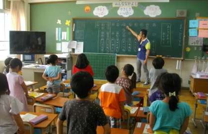 1年生が,大きな声をだして音読をしています。