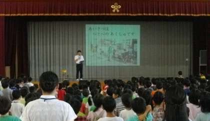 今日は,高橋先生に絵本を読んでいただきますので,静かにききましょう。