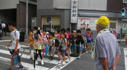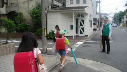 今日も見守り隊の方々に見守られ,子どもたちが登校してきました。