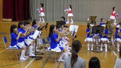地域の「愛の一声運動開始式」が本校体育館で行われました。金管マーチングバンド部が今年度初めての演奏と演技を発表しました。たくさんの地域の方,お家の方に見ていただいて,とても充実した発表になりました。