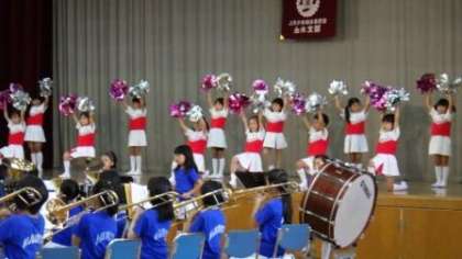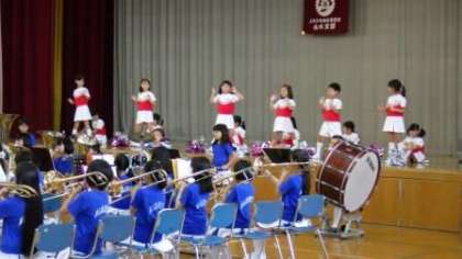 今年度初めてのガード隊の発表をしました。今年から入部した2年生が加わり,みんなで楽しく演技をしています。