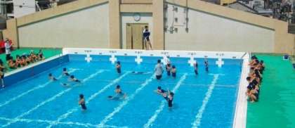 1年生は,プールで学習をしています。5年生は音楽で弦楽器について学習をしていました。