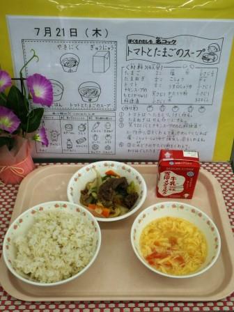 「トマトとたまごのスープが,たまごがふわふわでおいしかったです。またたべたいです。」(2年児童)