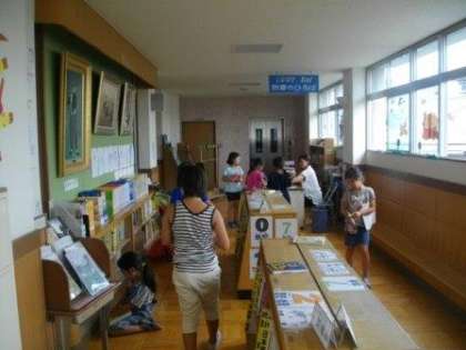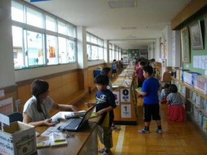 図書の時間に,3年生がライブラリーロードで学習しています。夏休みに読みたい本を探して借りていました。長い休みの間も本に親しんでほしいと思います。
