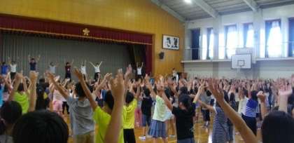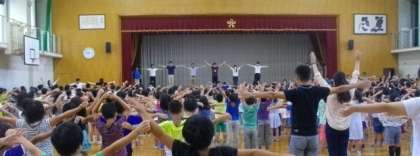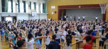 朝会の後,体育館で全員でラジオ体操をしました。