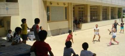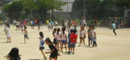 休み時間にはたくさんのお友達が外で遊んでいます。