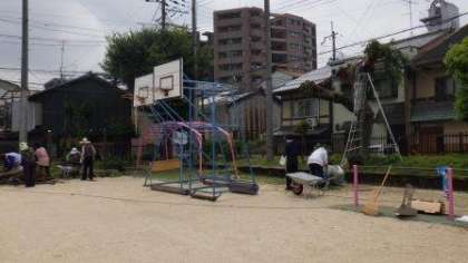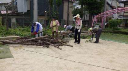 今日も支部の管理用務員さんに共同作業でお世話になっています。運動場周辺の木の剪定作業をしていただいています。暑い中,学校をきれいにしていただきありがとうございます。