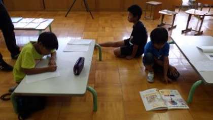 多目的室をつかって,自由研究相談会を行いました。テーマについて相談したり,学校図書館の本を使って調べたりしていました。