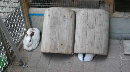いつもはくっついていることの多いうさぎたちですが,今日は,すみっこにかたまっています。