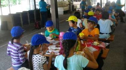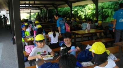 今日はこの後,入所式・オリエンテーションを行い,午後は夕食の野外炊事の活動を行う予定です。夜はキャンプファイヤーをします。