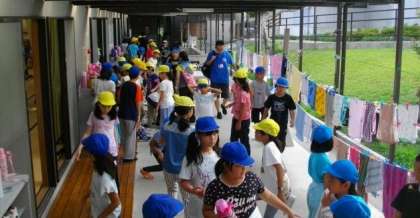 活動準備の様子です。今から広場に向かいます。