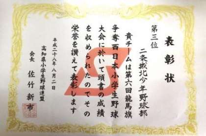 高知県で行われた第6回龍馬旗争奪西日本小学生野球大会に出場した6年生の子どもたちが,学校へ報告にきてくれました。3位と健闘した子どもたちのこれからの活躍を期待しています。