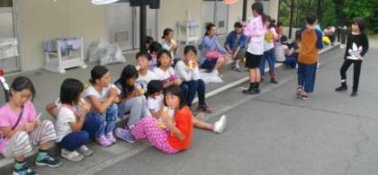 4日(木)みさきの家 ジュースを飲んでいます。