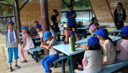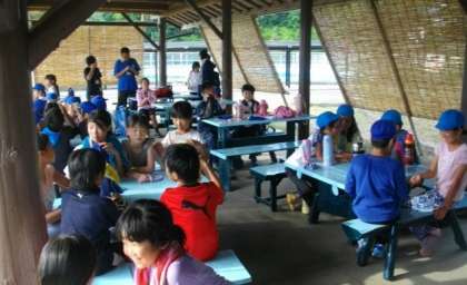 夕食の時間まで少し時間があったので、すずしい東屋で楽しく過ごしました。