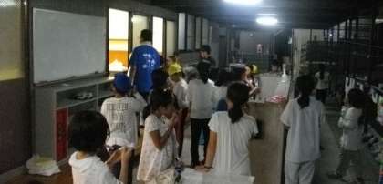 はみがきをして、就寝準備にかかります。今日も、バンガローとテントに分かれて寝ます。