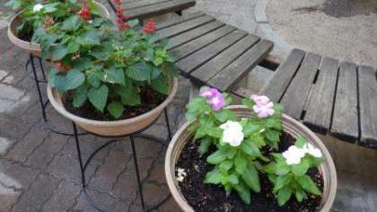 夏休み中も園芸委員会は草花の栽培,飼育委員会はウサギやカメの世話をしてくれています。毎日の世話のおかげできれいな花を咲かせています。ウサギは暑いのか日かげでのんびり過ごしています。