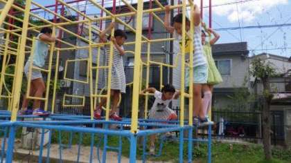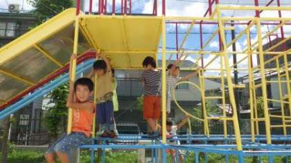 いい天気になりました。たくさんの子どもたちが外で元気に遊んでいます。