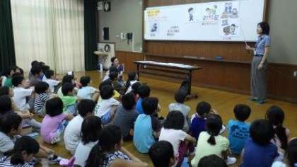 警察の方に来ていただき,社会のルールについての話をしていただきました。いじめも犯罪であること,いじめがあったらどのように行動したらいいかなどについて学習しました。
