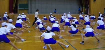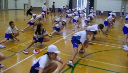 6年生が運動会に向けて,団体演技の練習を始めました。