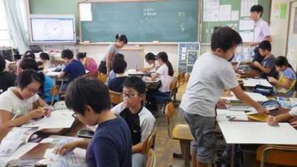漁業について学習したことを,班でポスターにまとめています。完成した後は,ポスターを使って発表する予定です。