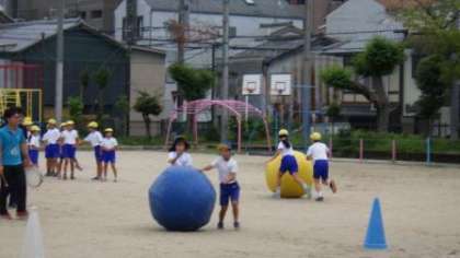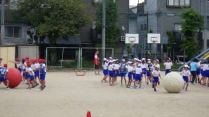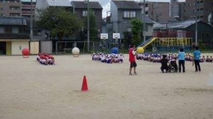 運動会の練習をしています。入場のかけ声や競技中の応援も元気いっぱい行っています。