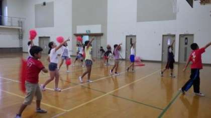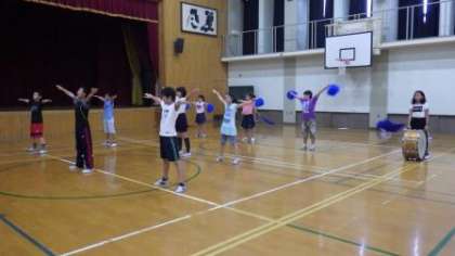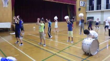 運動会に向けて各色の応援団が休み時間に練習をしています。各色の団長を中心に,自分たちで集まって練習している姿がすばらしいです。
