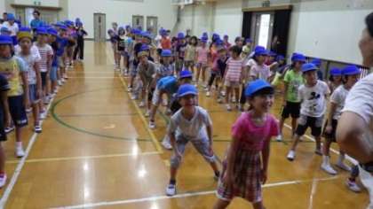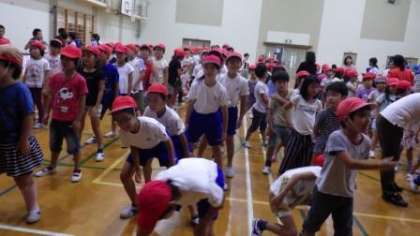 今日の運動会フリータイムの時間は,赤組と青組は体育館で全校ダンスの練習をしました。