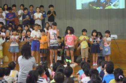 今日は4年生が8月に行ったみさきの家野外活動について発表しました。みさきの家での思い出の川柳を紹介しながら,2泊3日の活動を通して学んだことをしっかりと発表していました。