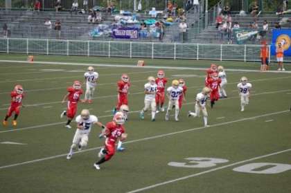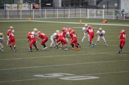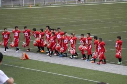 タッチフットボールのリーグ戦第一戦が行われました。たくさんの得点をきめて快勝しました。