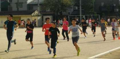 いいお天気になりました。6年生が朝マラソンに取り組んでいます。