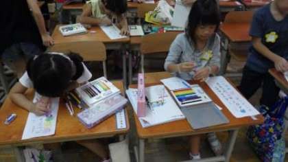 人権週間の取組の一つとして,全校児童が「人権標語」を作っています。1年生もがんばって五・七・五の標語を考えていました。