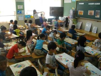 1年生が,お話の絵に取り組んでいます。