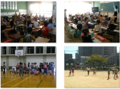 1時間の様子です。6年生は学年集会で,お互いにがんばったことや努力したことなどをみつけて拍手をおくっています。3年生は,運動場で「かげおくり」を体験しています。2年生は漢字の練習をがんばっています。