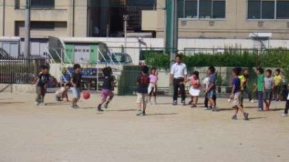 日差しは強いですが,風もあるのですごしやすいです。クラスの「みんな遊び」で,ドッジボールやおにごっこなどをしている学級がいくつかありました。