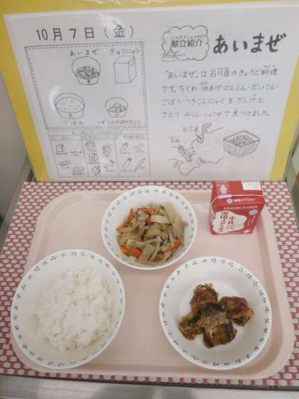「いわしのかばやきふうがごはんと合っていておいしかったです。あいまぜにごぼうも入っていいるんだなと思いました。」(2年児童)
