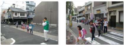 見守り隊の皆さんに見守っていただき,子どもたちは元気よく登校してきました。