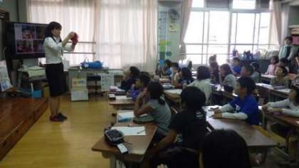 お隣の国,韓国について学習しました。民族衣装,食事,遊び,正月の慣習などを日本と比べることを通して,韓国の文化に親しみました。