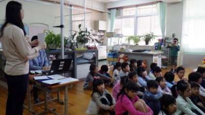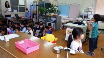 今日は1年生が視力検査を行っています。静かに順番を待つことができていました。