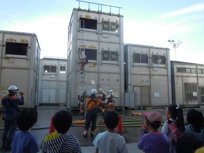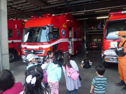 このセンターは特別な消防車がたくさん備えられていたり,消火活動の訓練をされたりもします。子どもたちは体験だけでなく,消防車や実際の訓練の見学もさせていただきました。楽しみながら火災や安全について学ぶことができました。お世話になった自主防災会,消防団,上京消防署北野出張所の皆様,ありがとうございました。