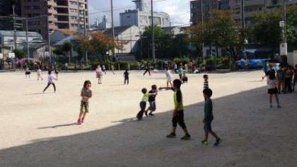 とてもいい天気になりました。なわとびやハンドベースボールなどをして,元気に遊んでいます。