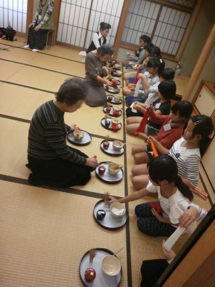 地域の先生方にお世話になって,6年生は千歳盆点前,5年生は盆略点前,4年生は割稽古を行いました。