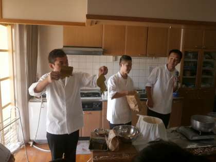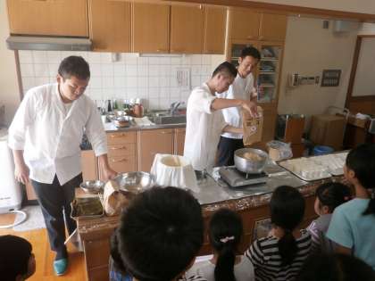 味覚の授業では,だしのとり方を実演していただき,子どもたちは昆布の大きさやかつお節の量にびっくりしていました。