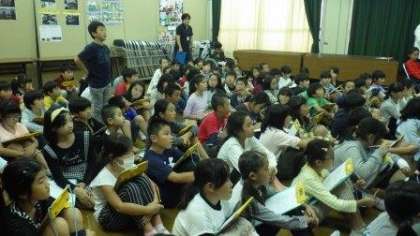 ゲストティーチャーをお招きして,盲導犬についての話を聞きました。白杖の使い方や,盲導犬がどんな仕事をしているかなどについて,わかりやすく話していただきました。