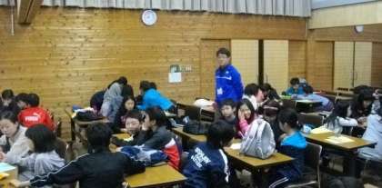 保健係が健康チェックをしました。明日は6時起床で、朝の集い、朝食をとったあと、山登りに挑戦します。