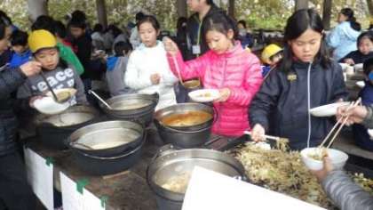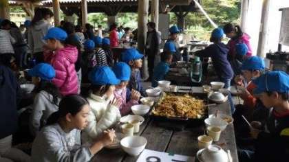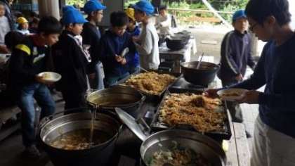 料理が完成しました。自分の班の料理を食べた後は,友達の班の料理を楽しみました。
