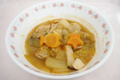 「けい肉ときのこのトマト煮がおいしかったです。肉や野菜がやわらかくておいしかったです。きのこもやわらかくて食べやすかったです。また作ってください。」(6年児童)