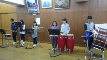 学習発表会の合奏の練習をしました。打楽器や鍵盤ハーモニカ,アコーディオンなど,パートに分かれて練習しました。
